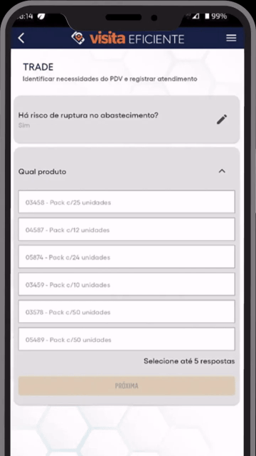 Colete dados de ruptura, pesquisa de preço, concorrência ou oportunidades de venda direto do campo.