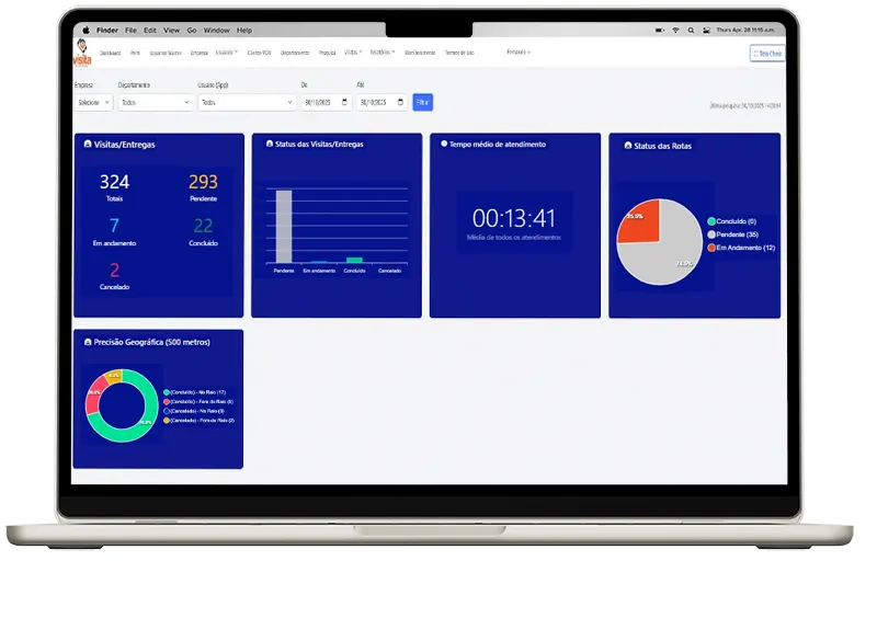 Saiba o local exato e o horário de início e fim de cada atendimento. É o fim do “achismo” e o início da gestão por dados.
