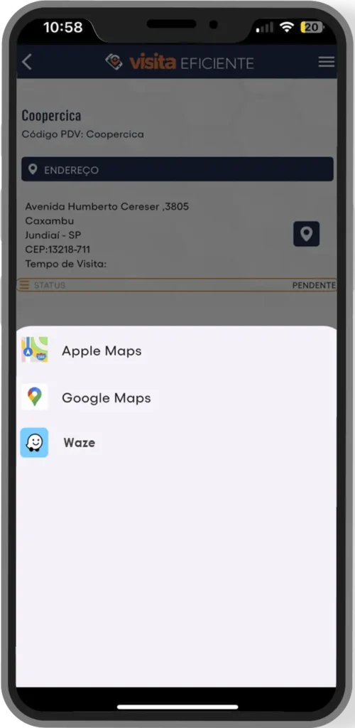 O app se integra aos melhores mapas (Waze, Google Maps, Apple Maps) para guiar o executor até o próximo cliente pela rota mais rápida.